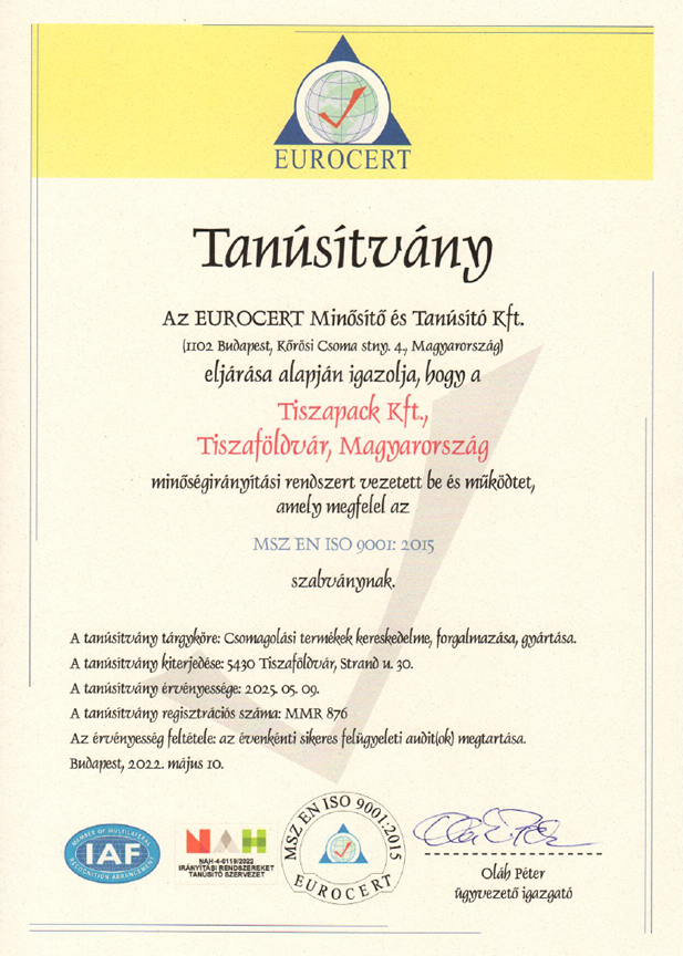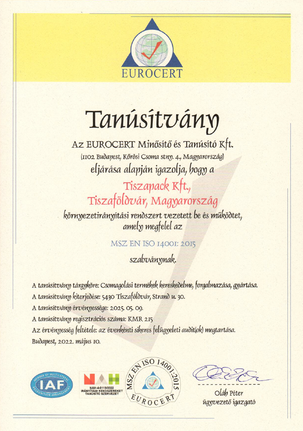 TISZAPACK Papírfeldolgozó Kft. 5430 Tiszaföldvár, Strand út 30. E-mail: info@tiszapack.hu